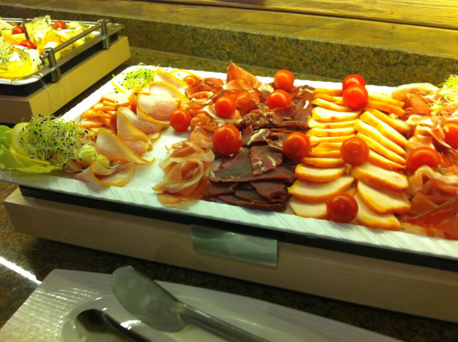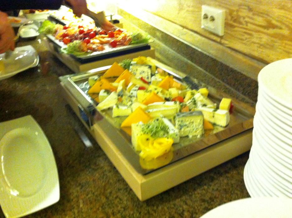 Den Rest des Buffets erspare ich Euch. Das Gemüse für den Salat ist wie immer in Rumänien über jeden Zweifel erhaben, vor allem die Tomaten sind der Hammer, wenn man sonst meistens nur Hollandware aus dem Gewächshaus bekommt. Für die Wurstplatten hat keiner in der Küche was gemacht, nur irgendwie drapiert, aber das warme Essen steht in einem krassen Kontrast zu dem ansonsten sehr schönen Hotel. Total lieblos, ohne Garpunkte und jede Form von Raffinesse. Da ist auch nix frisch und da weiß ich, dass da solche Tütenfürsten regieren. Geht gar nicht!