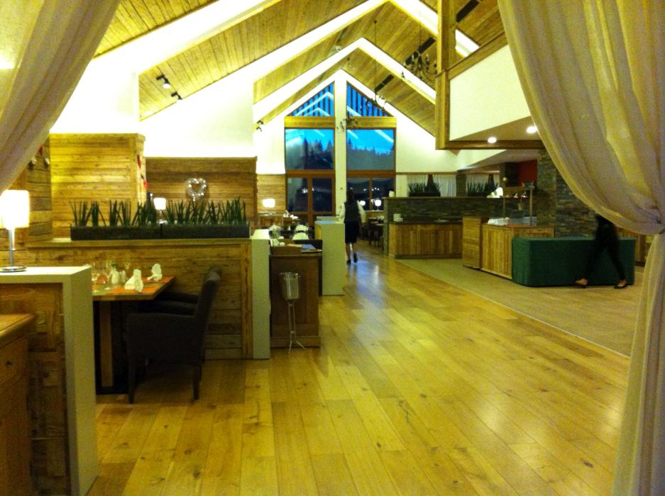 Hier ist das Hotel Teleferic Grand Hotel. Das gab es schon zu Sozialismuszeiten und stand dann geschlagene 20 Jahre leer. Die Renovierung hat drei Jahre gedauert, aber das hat sich wirklich gelohnt.