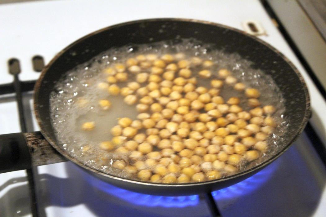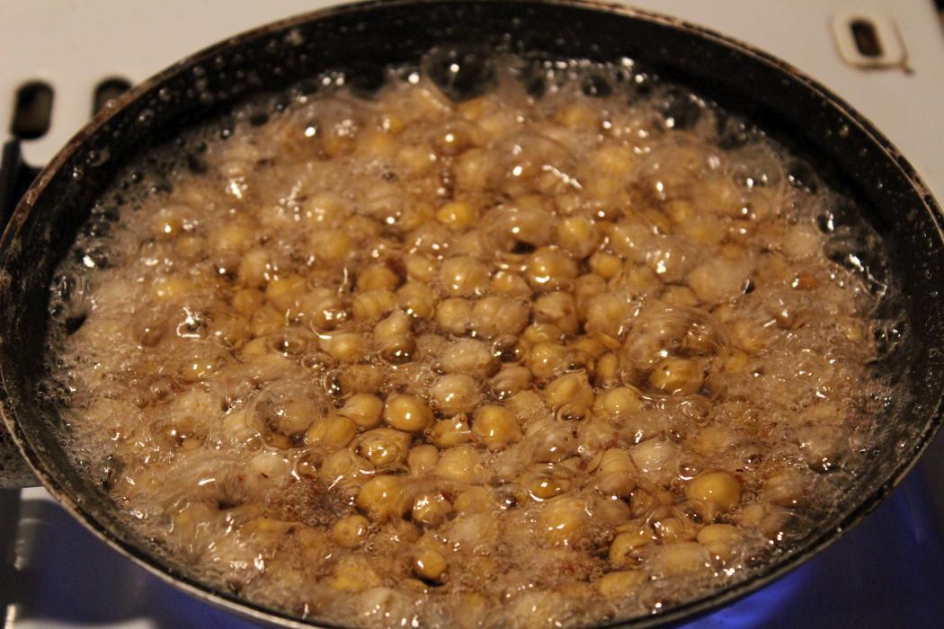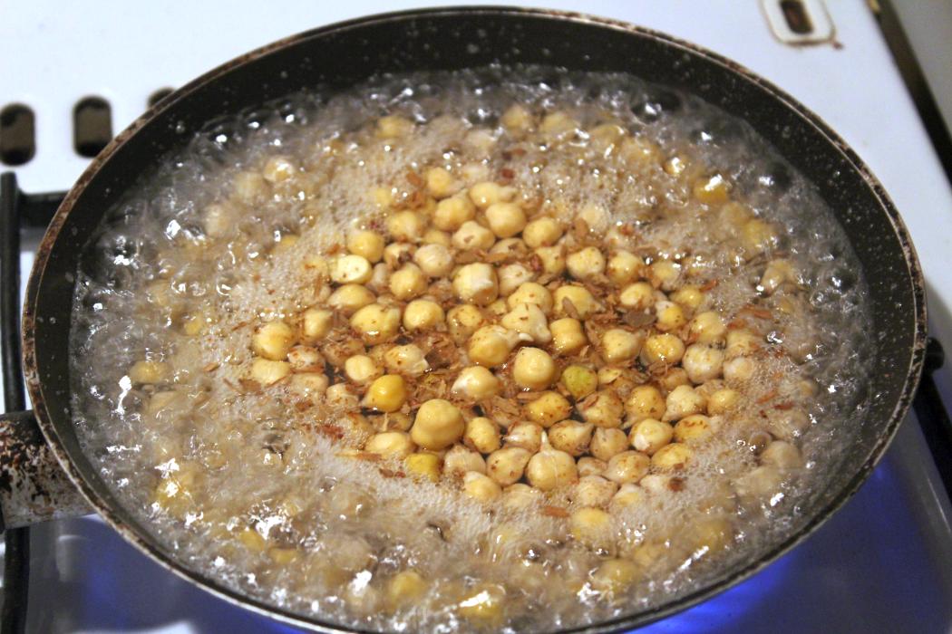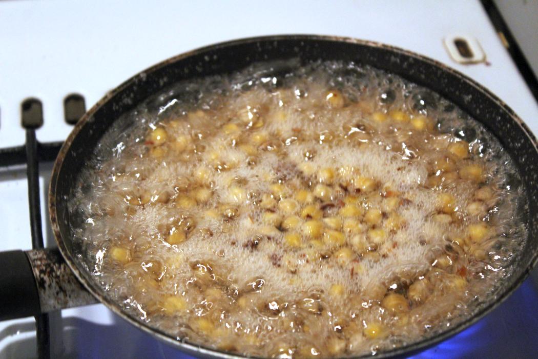 Meine Kichererbsen waren ein Arschloch und fingen plötzlich an zu springen wie Popcorn. Ich habe gedacht ich spinne und habe schnell einen Deckel auf die Pfanne geworfen.