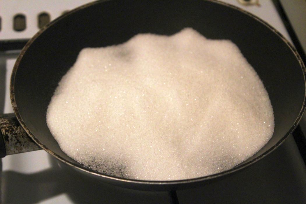 Pfannenboden mit Zucker bedecken