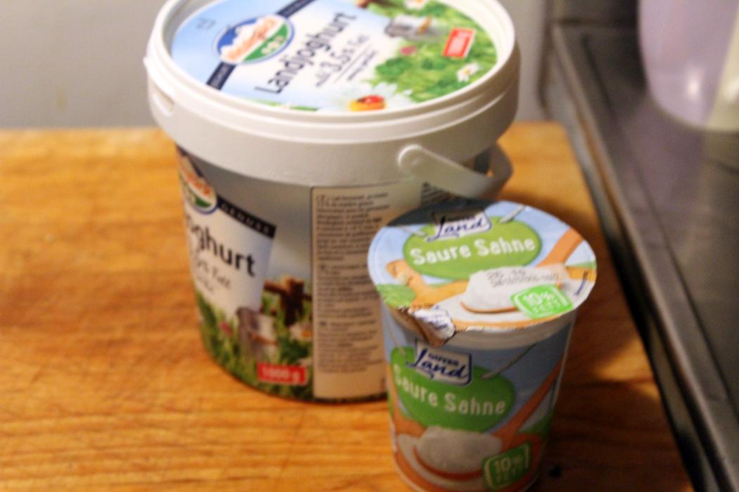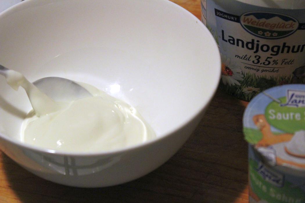 150 Milliliter Joghurt, Fettgehalt egal, aber bei uns nicht unter 3,5 % (meine Frau)