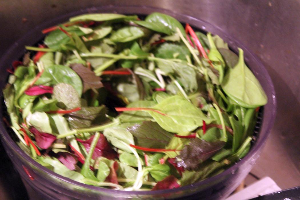 Italienischer Wildkräutersalat ist mal ne ganz vornehme Umschreibung für Babyspinat, Babymangold, Kresse, roten Senf und noch ein bisschen grünes Gedöns. Wildkräutersalat aus dem Gewächshaus, aber immerhin im Angebot bei Metro für knapp unter vier Euro für 500 Gramm. Das ist eine willkommene Abwechslung zu meinem ewigen Eisbergsalat, den ich nur deswegen kaufe, weil ich den von einer Woche zur anderen im Kühlschrank lagern und dabei auch mal richtig mit Kraft in das volle Gemüsefach reinstopfen kann. Auf jeden Fall ist der Wildkräutersalat nettes Beiwerk zu meinem Kernthema, leckeres Dressing schnell selbst herzustellen, ohne viel Zirkus.