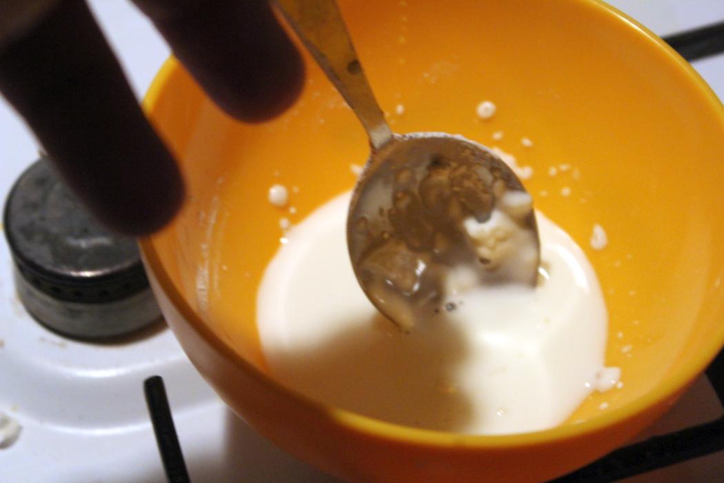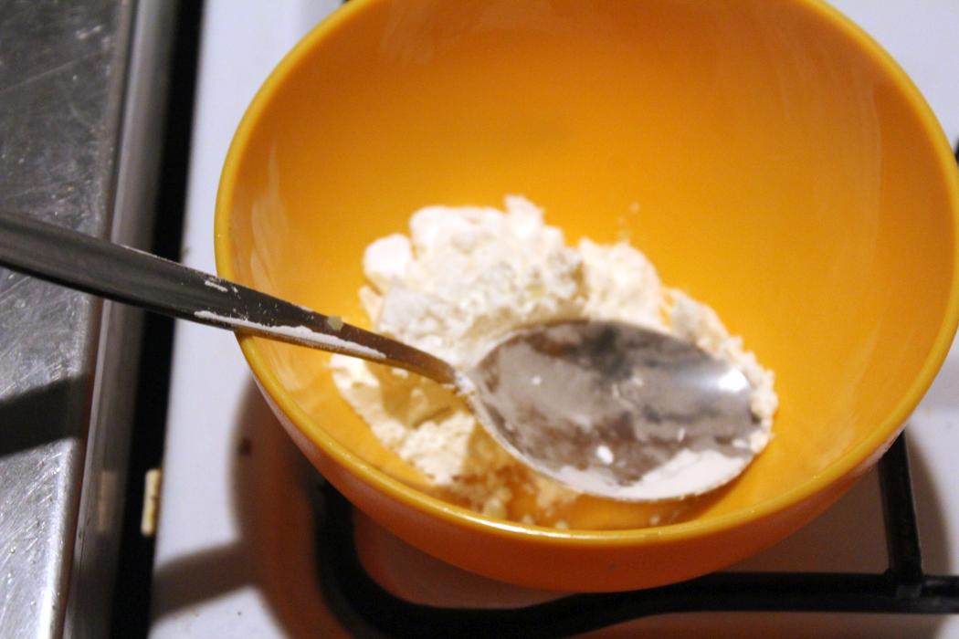 Ein paar Tropfen Wasser auf die Stärke geben und klumpenfrei verrühren.