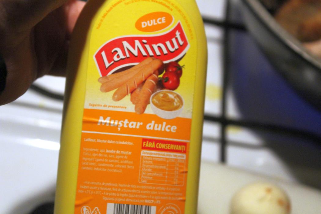 Den Senf habe ich aus Rumänien mitgebracht und muss den mal in Action erleben, sonst hätte ich selbst gemachten verwendet. Der ist ziemlich harmlos und muss nicht nachgebaut werden, kann ich nach dem Test sagen.