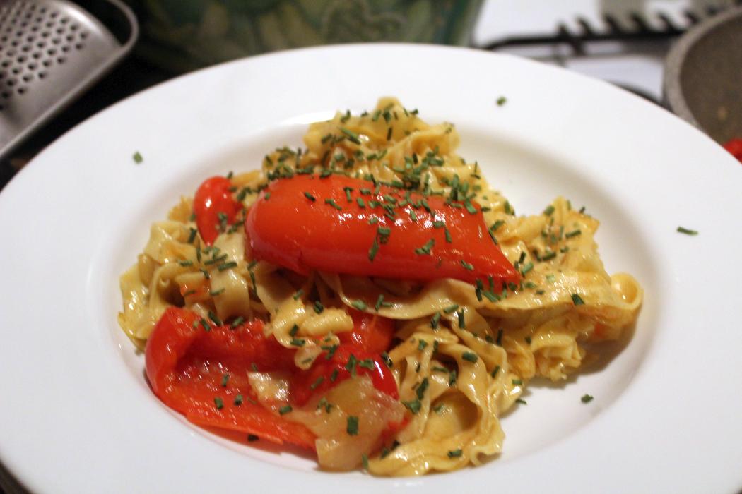 Wie man die Paprikanudeln macht, findet Ihr HIER (anklicken), da steht alles drin.