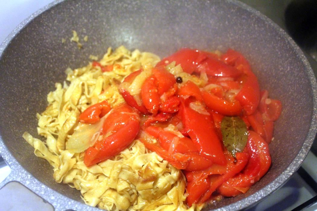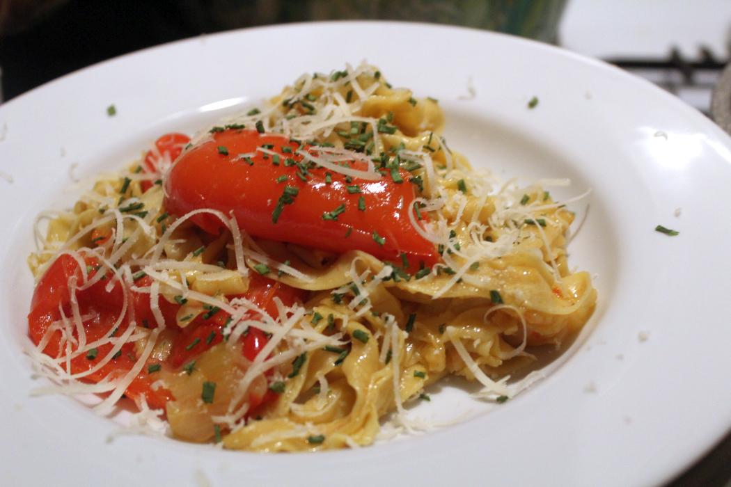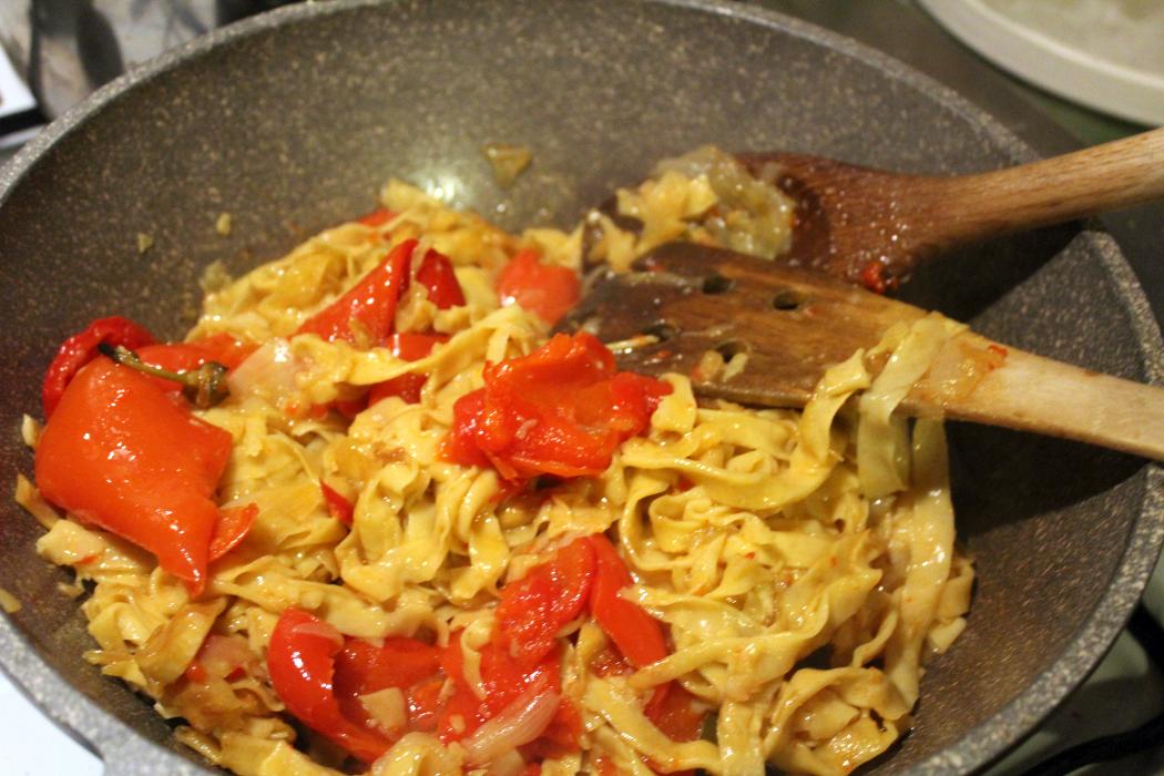 Bandnudeln mit Peperonata