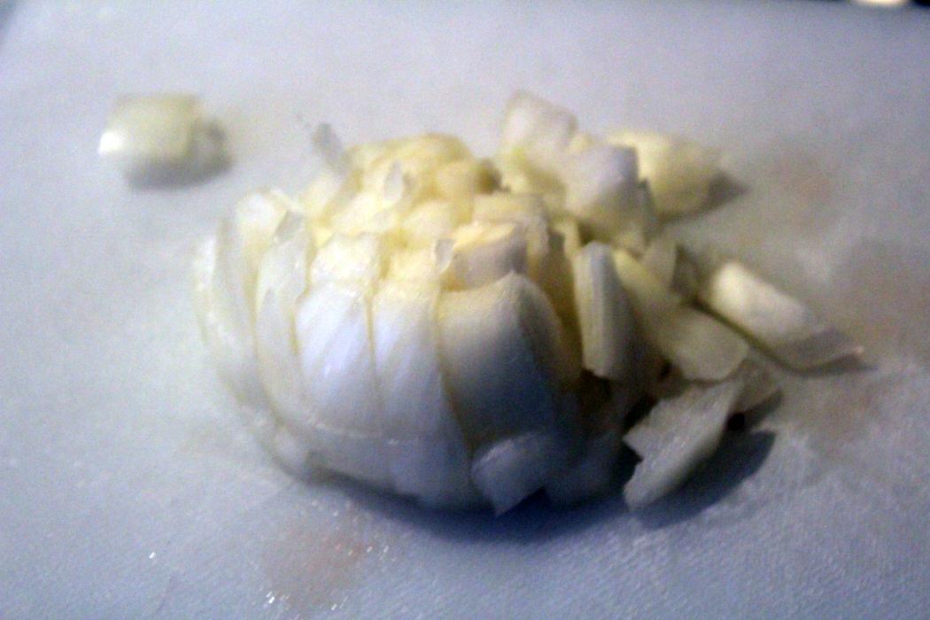 Eine Zwiebel zerkleinern.