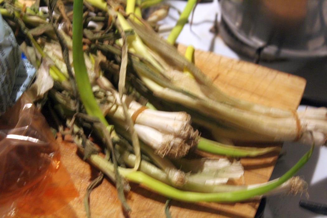Die Lauchzwiebeln sind echt nur noch so ein Gestrüpp. Die hatte ich  in der Kühlschranktür vergessen. Für Brühe sind sie genau richtig.