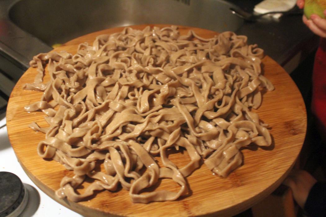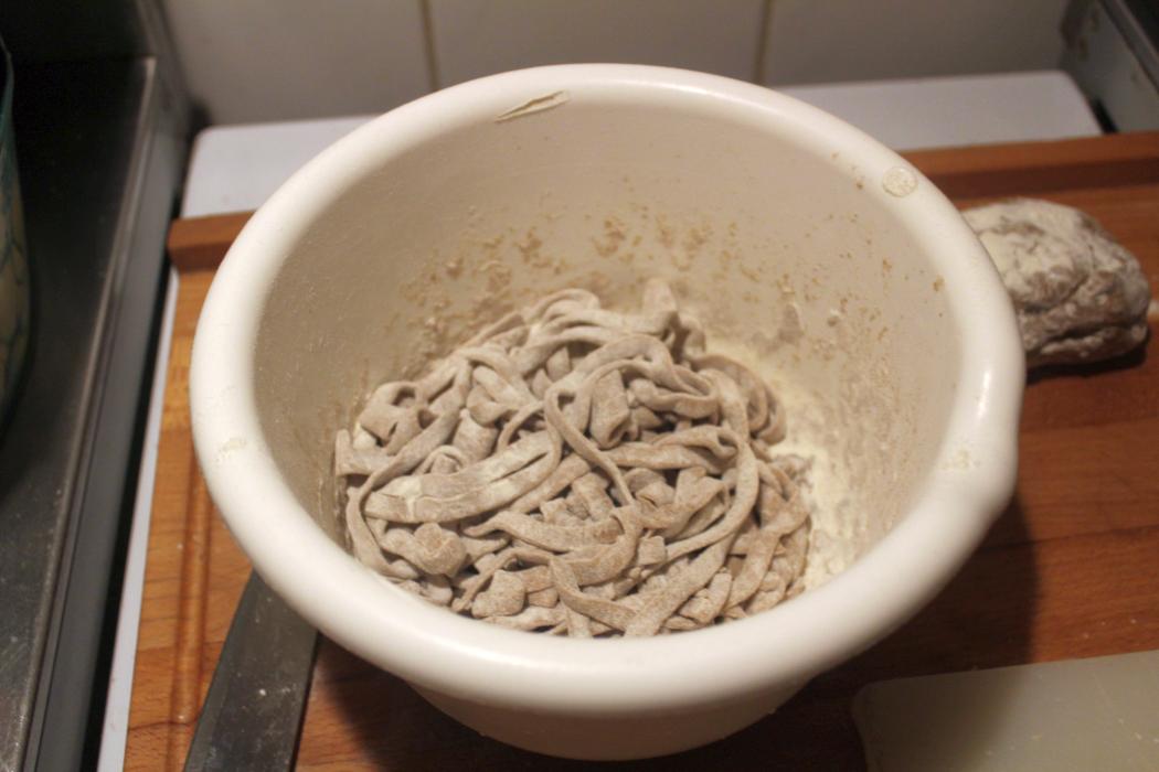 Dann mit dem Messer gerade zerteilen, damit die Nudeln ungefähr die gleiche Länge haben. .