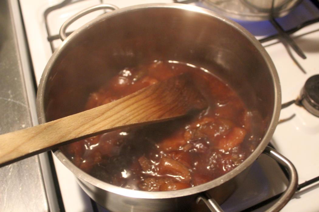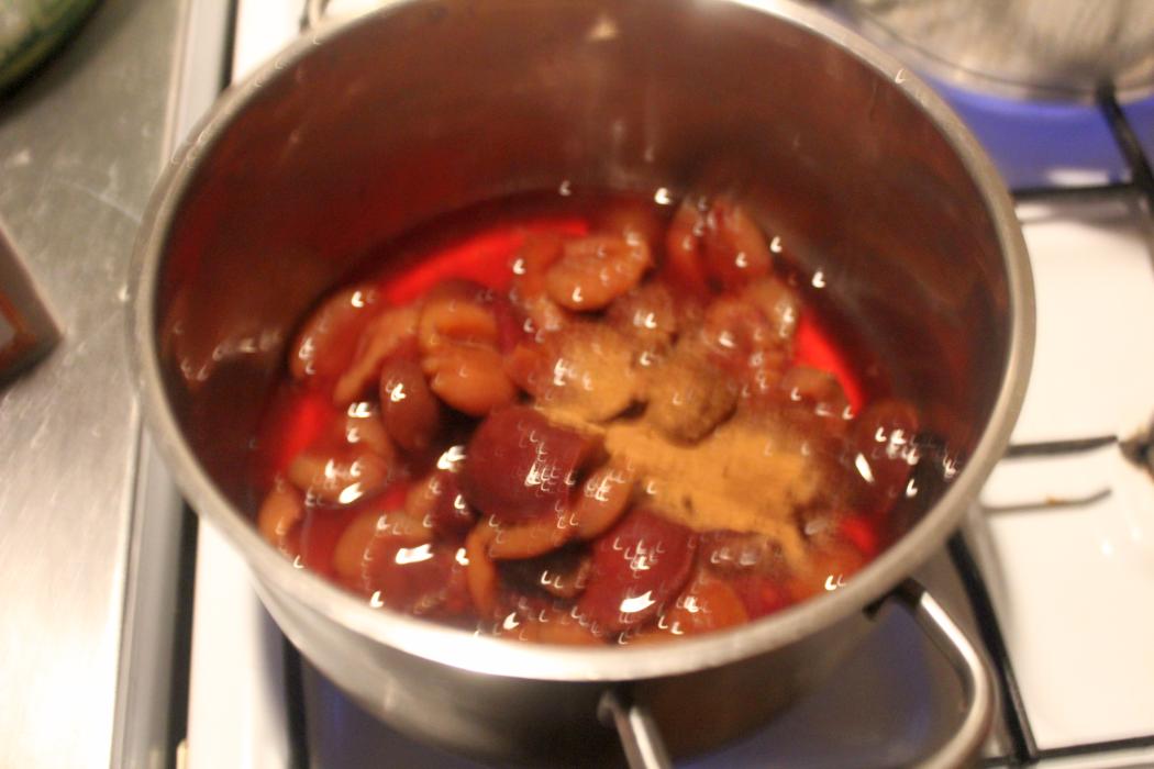 Pflaumen vom Herd nehmen und abkühlen lassen.