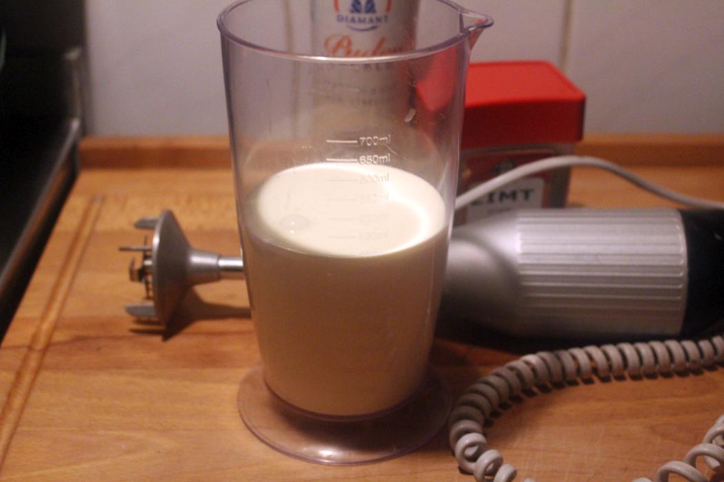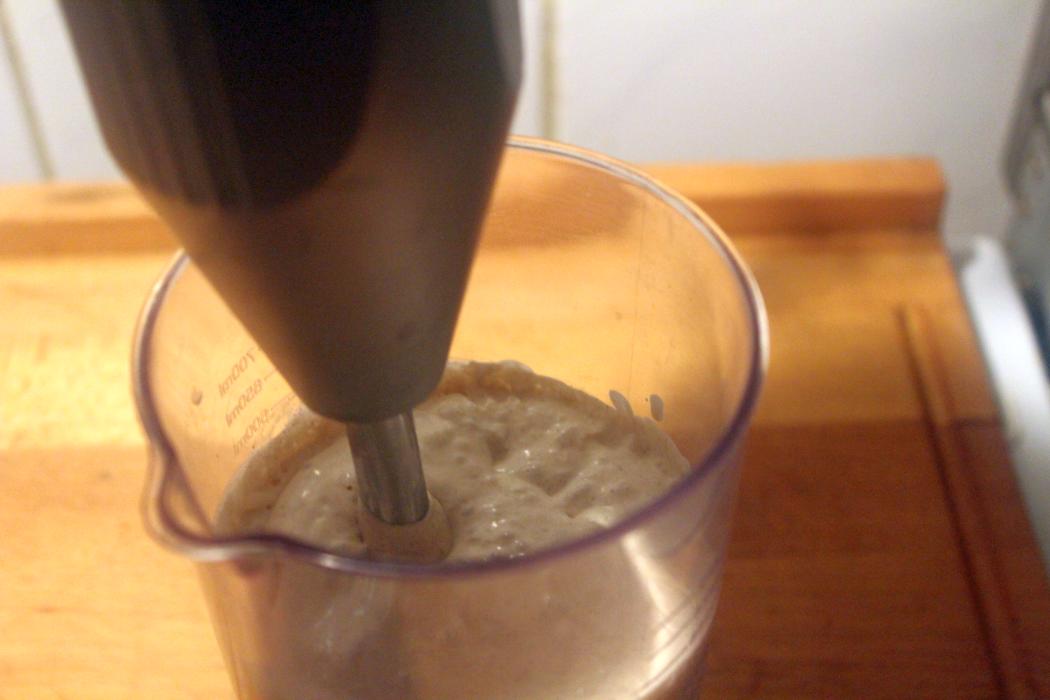 Wenn die Zutaten im Mixbecher sind, kommt entweder ein Handrührgerät, oder ein Pürierstab, oder wie in diesem Fall mein Esge Zauberstab zum Einsatz