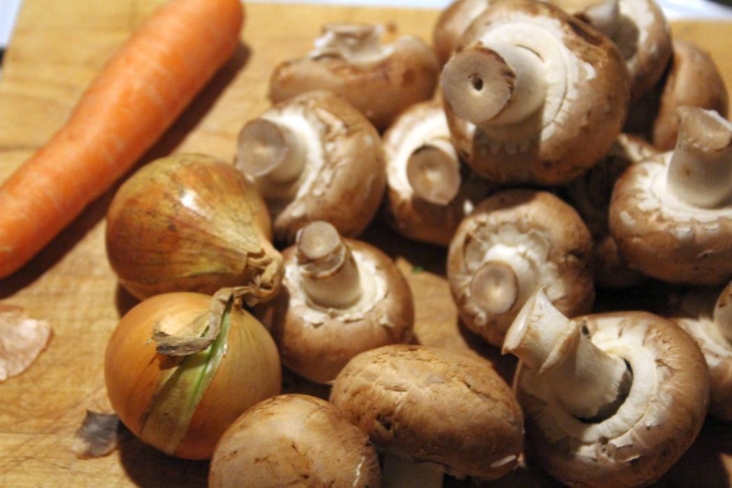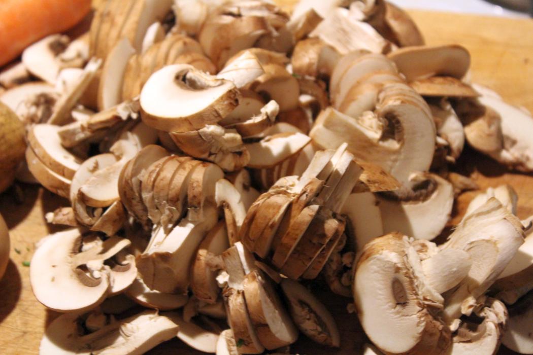 das ist eine gute frage. die champignons kann man weglassen, wenn man die nicht mag. erbsen und möhren sind drin. vielleicht schwarzwurzeln, weil es im winter keinen spargel gibt? das wäre doch was!