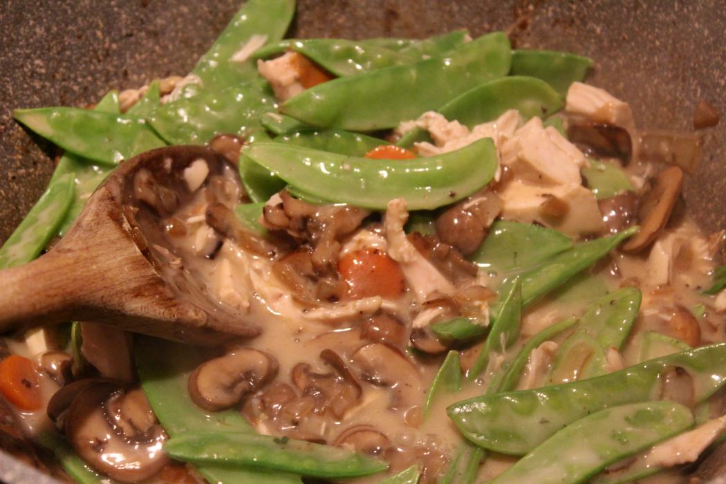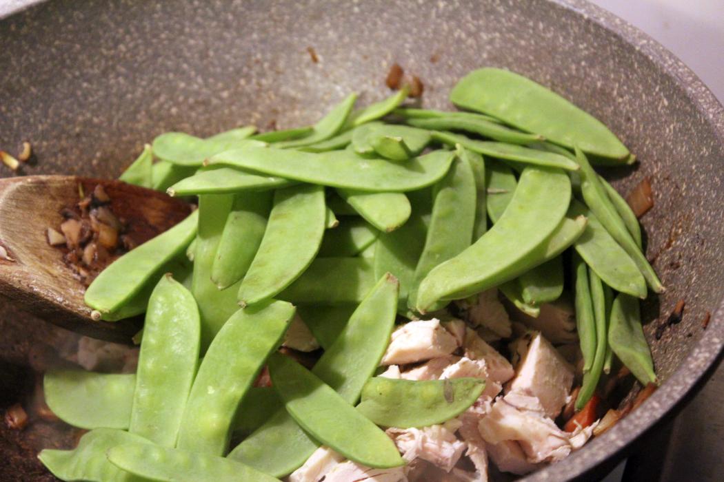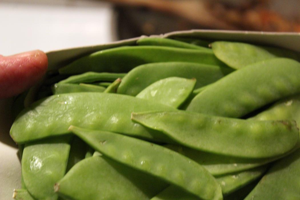 Wenn ich irgendwas nicht mag, dann sind das Dosenerbsen und auch die Tiefkühlerbsen sind nicht meine Welt. Deswegen habe ich überlegt was ich machen kann, damit alle zu ihrem Recht kommen, schließlich sehe ich bei 3/4 aller Frikassees immer der scheußliche Zeug auf den Fotos. Ich habe Erbsenschoten gekauft. Die schmecken roh schon toll, aber im Dezember kommen sie leider aus Ägypten. Irgendeinen Tod stirbt man irgendwie immer.