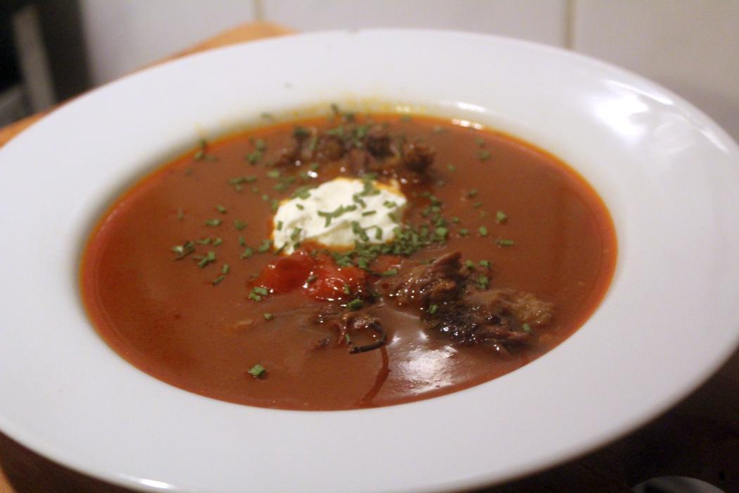 Das ist eine der kräftigsten Brühen die ich kenne. Ganz deftiges Rindfleisch in Kombination mit den zahlreichen Knochen, sorgen für einen unvergleichlichen Geschmack und sind eine tolle Basis für klare, oder gebundene Ochsenschwanzsuppen, oder auch für Soßen zu allen möglichen Gerichten.