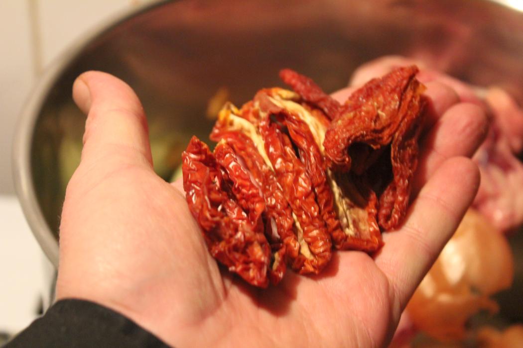 Getrocknete Tomaten bringen Geschmack und ein bisschen Salz und Farbe für die Brühe