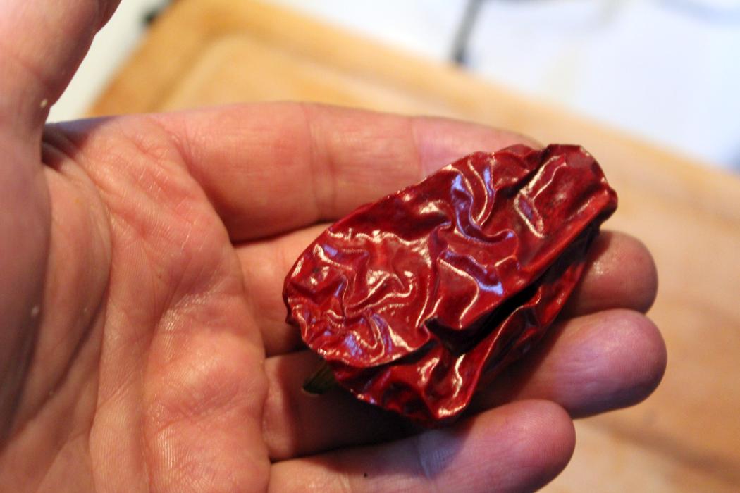 Eine Handvoll getrocknete Tomaten. Die werden mit Salz getrocknet, geben also auch noch mal Würze und ebenfalls Farbe.