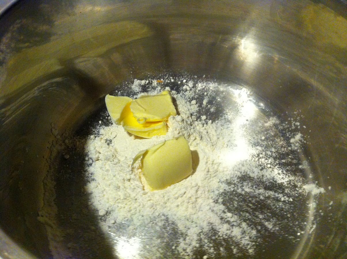 Zwei Esslöffel Butter und zwei Esslöffel Mehl im Topf erhitzen
