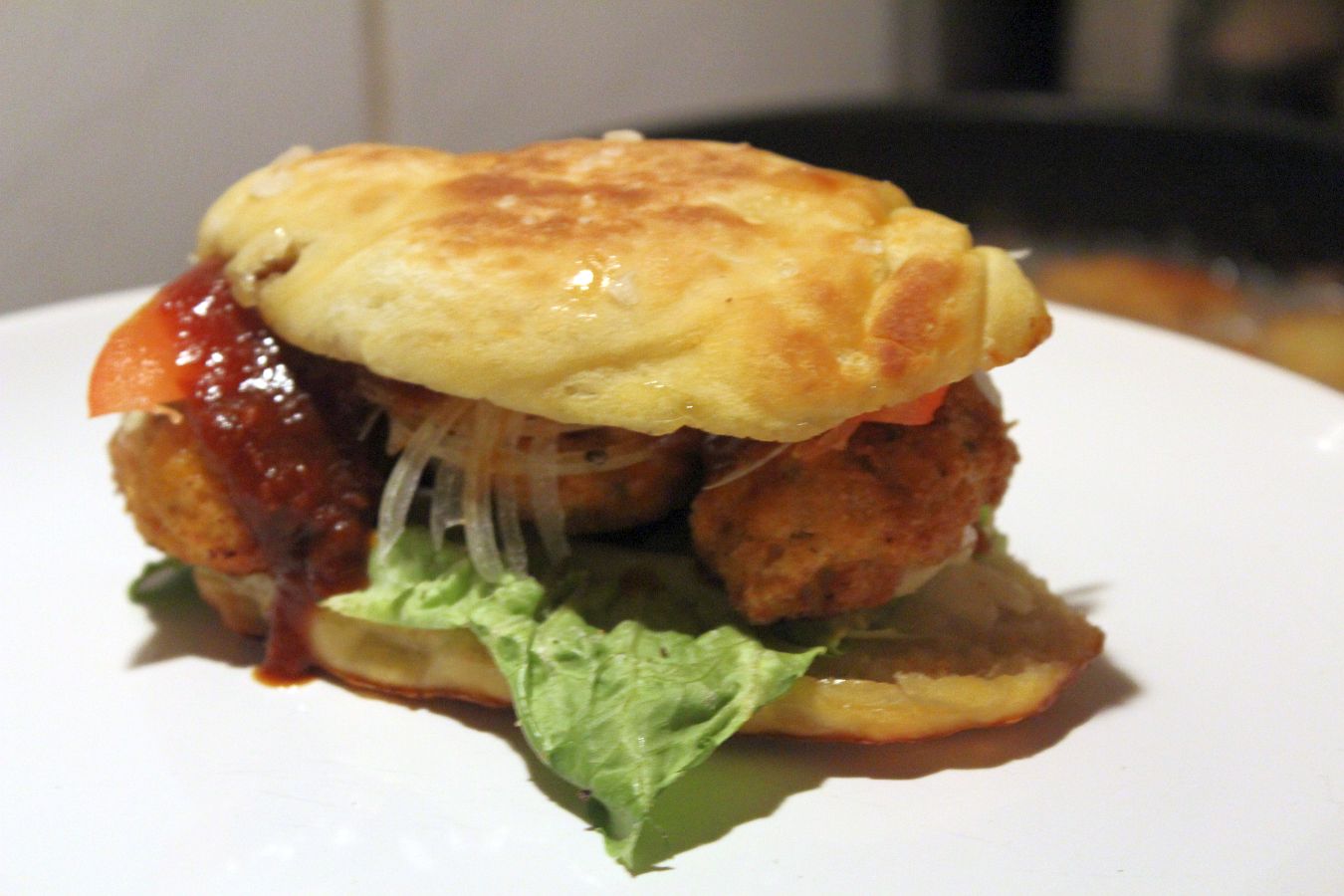 Das Chicken-Cheesenuggetsandwich geht in die Richtung Streetfood und ich bin mittlerweile auch darauf gekommen, wo mein plötzliches Interesse am asiatischen Einschlag herkommt. Bei uns um die Ecke hat ein vietnamesisches Lokal eröffnet und wir sind dort in letzter Zeit ein paar Mal zum Mittagsessen gewesen, wenn Geschäftsbesuch da war. Ich beeile mich dann zwar immer zu sagen, dass ich nichts mit Fischsoße haben will, aber wer weiß was die mir dort immer unterjubeln. Auf jeden Fall machen sie dort handwerklich sehr leckeres und frisches Essen, das mich zu neuen Ideen inspiriert.