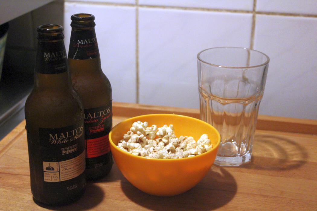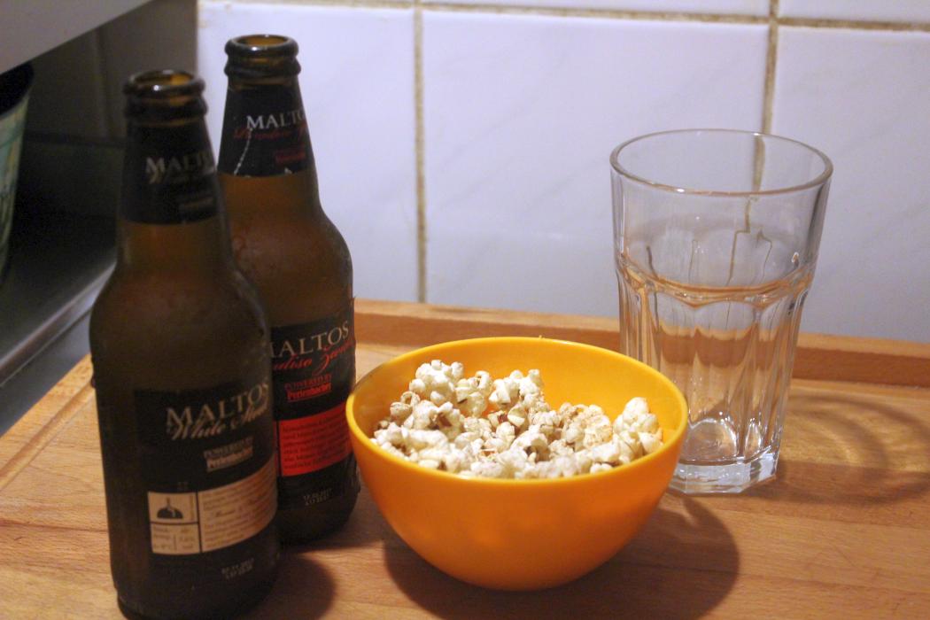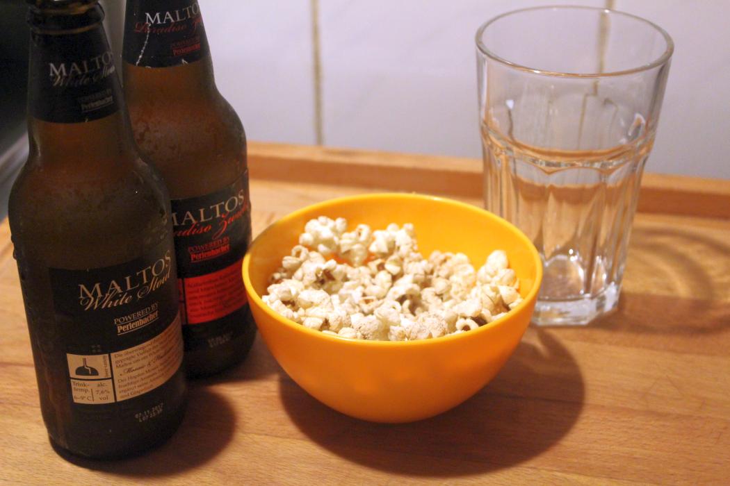 Regenwald schonen, Bierkonsum erhöhen. Zu einem leckeren kalten Bier ist das salzige Popcorn echt toll. Meine Frau hat es auch klaglos gegessen, obwohl sie eigentlich vorgibt, kein Popcorn zu mögen (stell Dich nicht so an, das ist salzig)