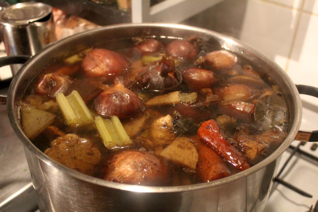 Mit dem Rest habe ich noch schnell eine Brühe gekocht. Ich muss Euch nicht sagen, was in dem Knochen für Geschmack steckt? Wahnsinn!