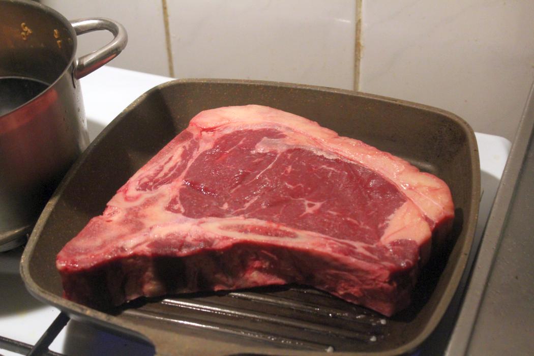 sensationelles Steak von Angus Weiderind das 35 Tage lang gereift ist und immer noch flotte knapp 1,4 Kilo Rohgewicht hat.
