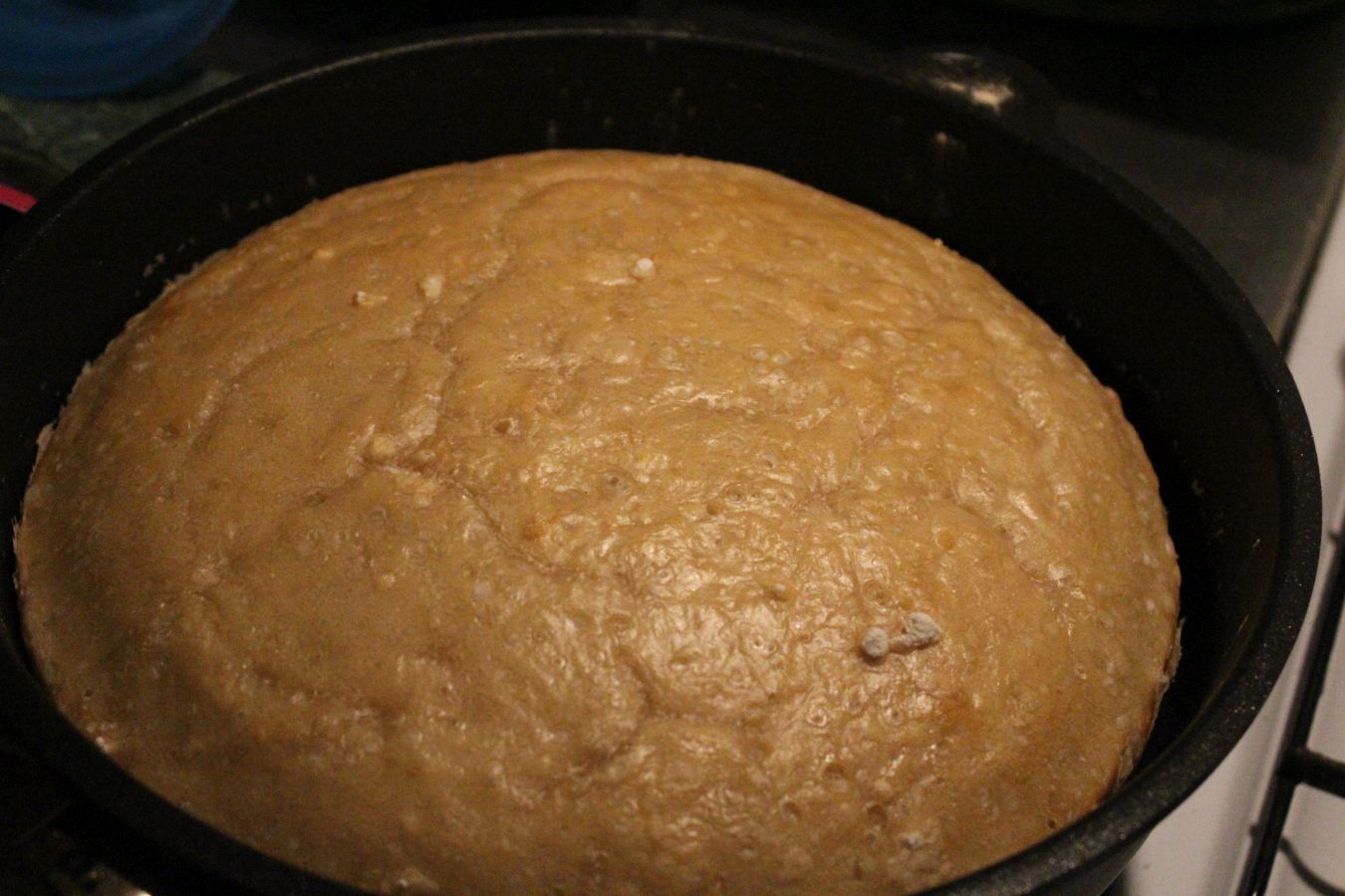 Von oben bemehlen, einen Deckel auf die Pfanne legen und erneut zwei Stunden ruhen lassen.