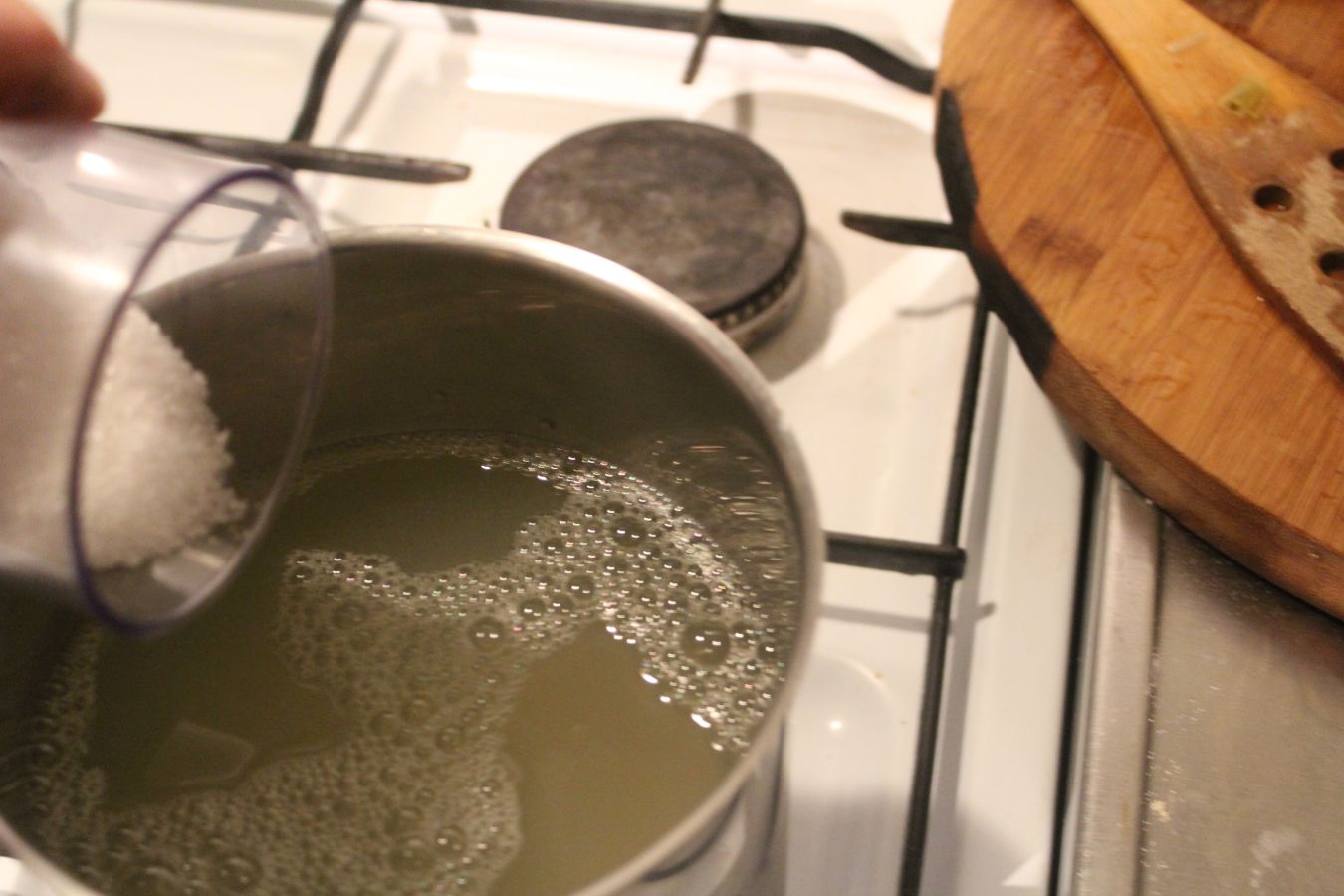 Den Zucker auflösen, probieren ob Euch das zu sauer, oder süß genug ist und eventuell noch nachzuckern