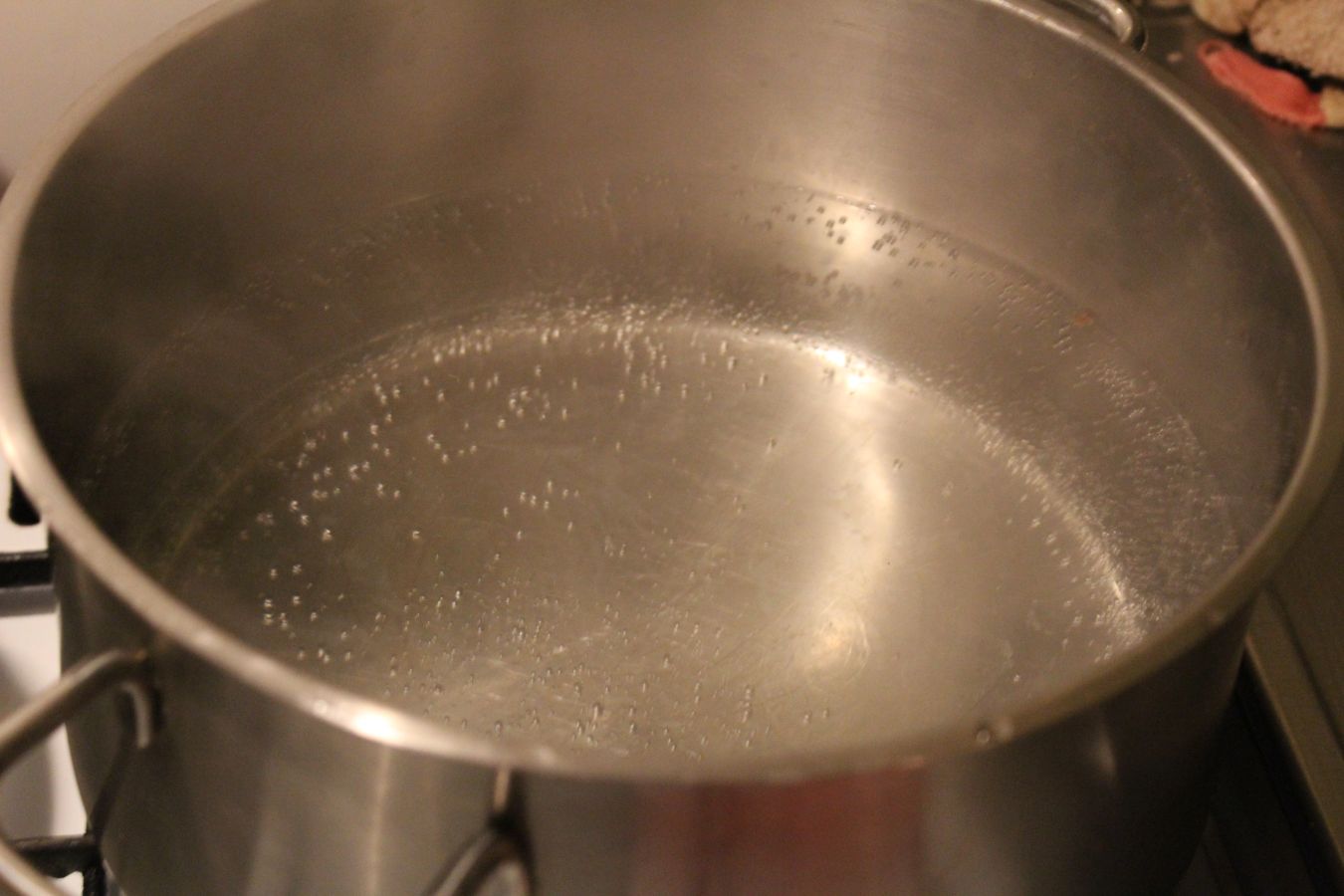 Wenn man die Semmelknödel in den Topf legt, soll das Wasser nicht mehr kochen, die sollen darin nur gar ziehen, bis die Milch-Ei Mischung mit dem Brot stockt. Als Temperatur auf niedrigste Stufe, Serviettenknödel rein, Deckel auf den Topf legen und eine halbe Stunde ziehen lassen,
