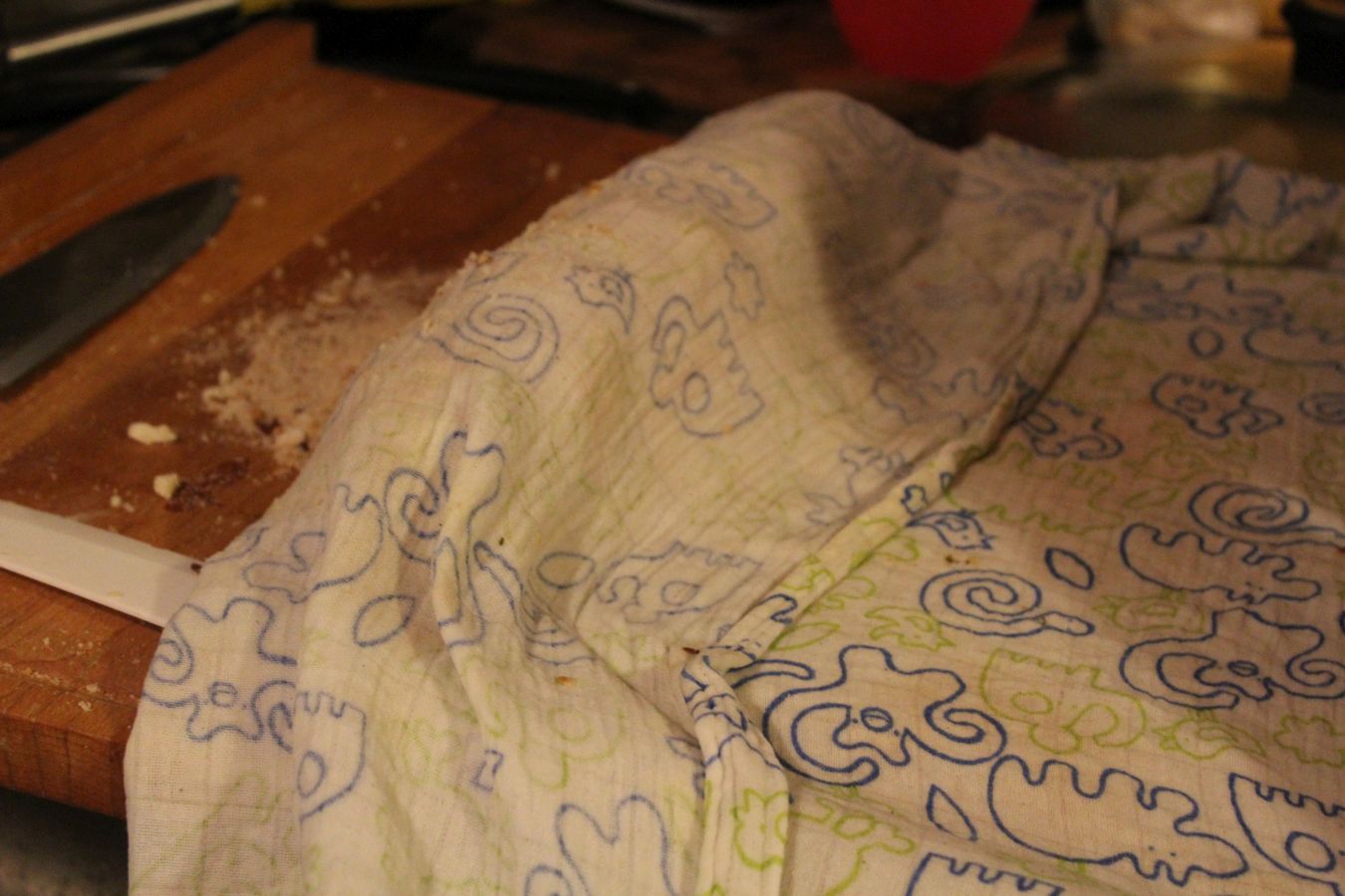 Das Tuch fest um den Teig Rollen, damit es eine stabile Form gibt