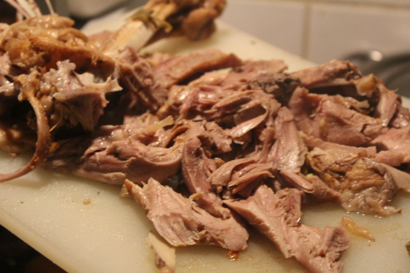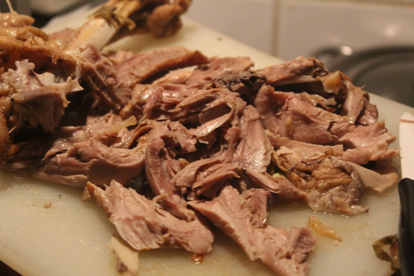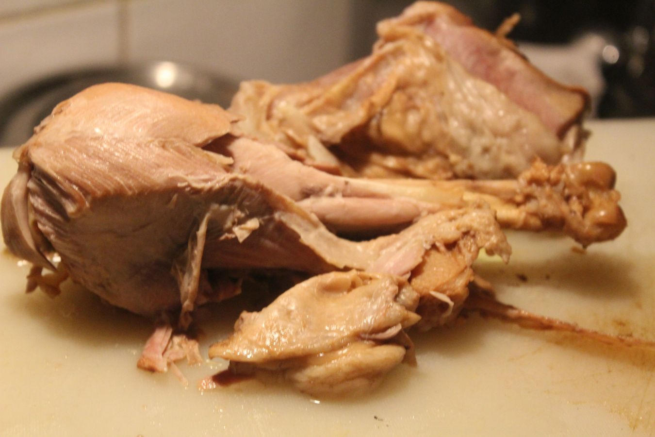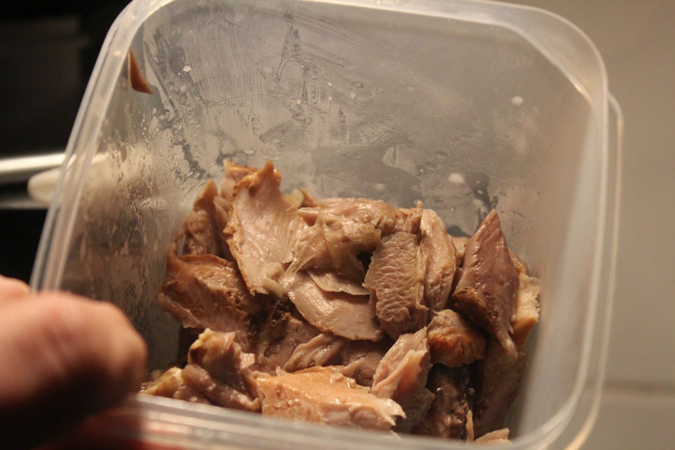 Das Fleisch der Putenkeulen kann man für Frikasse verwenden, für einen Geflügelsalat, eine Putensuppe, oder auch für eine Putensülze.