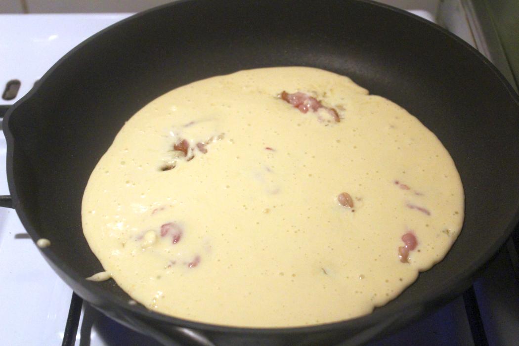 1 Kelle Pfannkuchenteig in die Pfanne geben