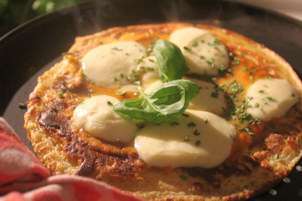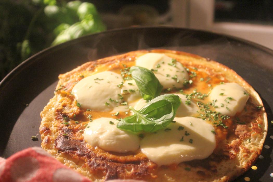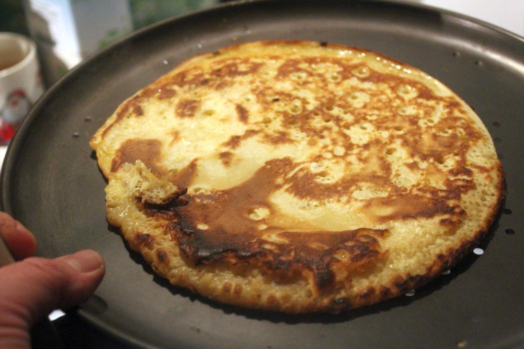 Nach einer guten Minute den Teig wenden und die Rückseite genau so lange ausbacken.