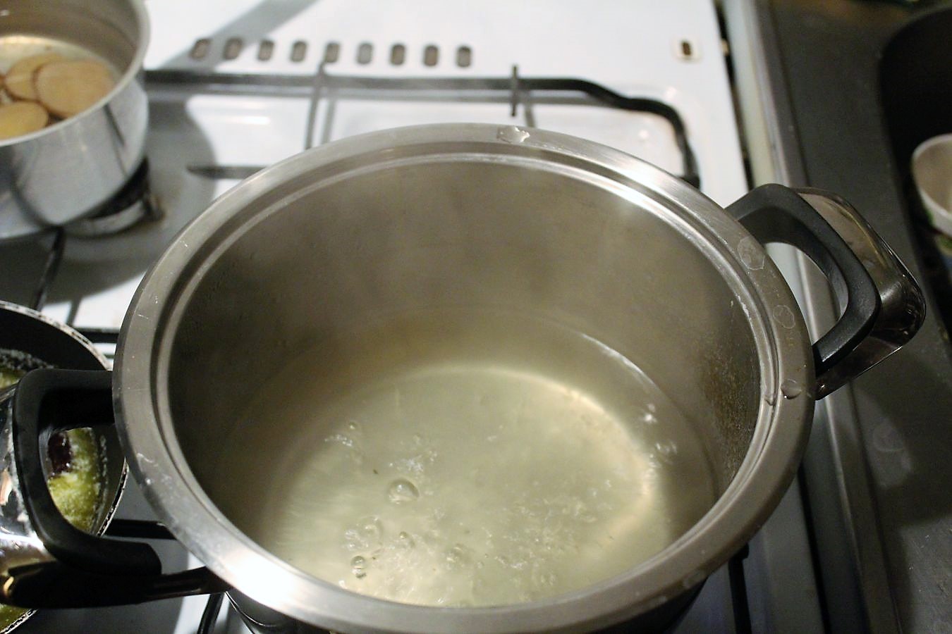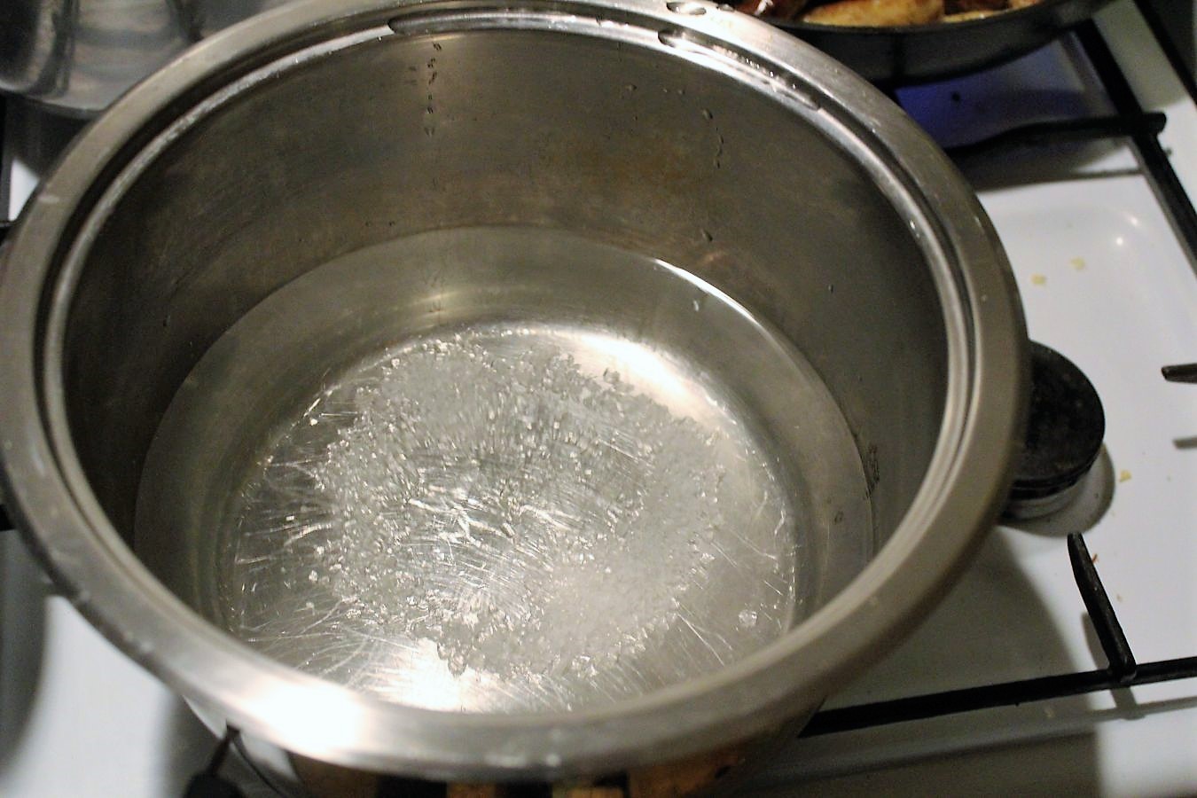 1 Teelöffel Meersalz ins Wasser. Keine Ahnung, ob das dem Wasserdampf etwas bringt, aber bevor es am Ende nicht schmeckt…