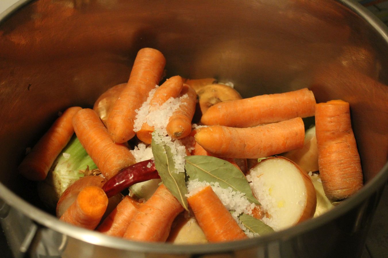 dieses mal habe ich damit nichts gemacht, aber bei der brühe aus putenkeulen, habe ich alles außer die zwiebeln geschreddert und nach der brühe in gläsern eingekocht, um damit soßen zu binden.