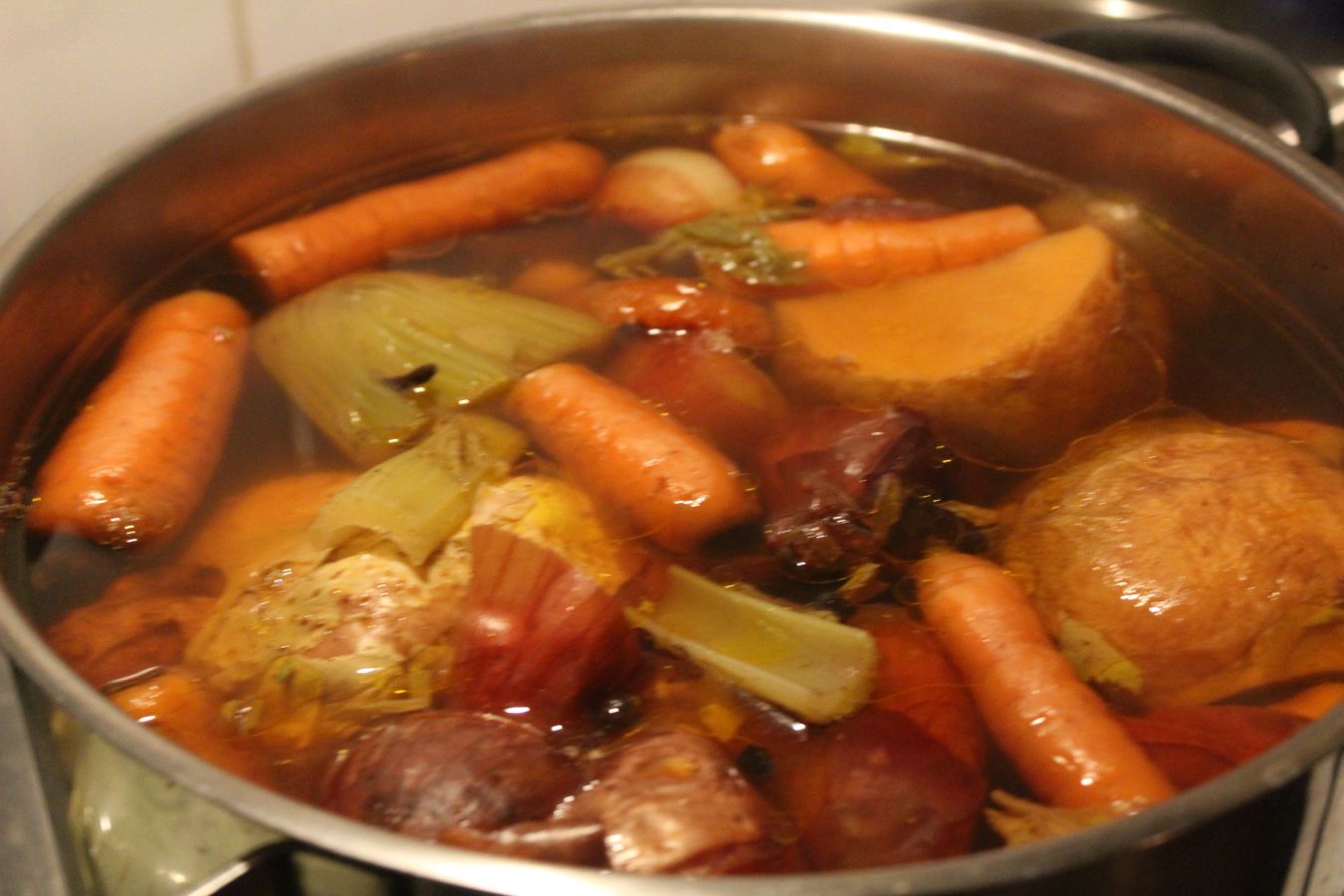 Selbstgekochte Brühen finde ich immer hervorragend, um Gemüse, das nicht mehr ganz so knackig ist, zu verarbeiten. Was machst du mit dem Gemüse, welches du in die Brühe geschmissen hast? Klar, es ist dann am Ende weich und zerkocht.