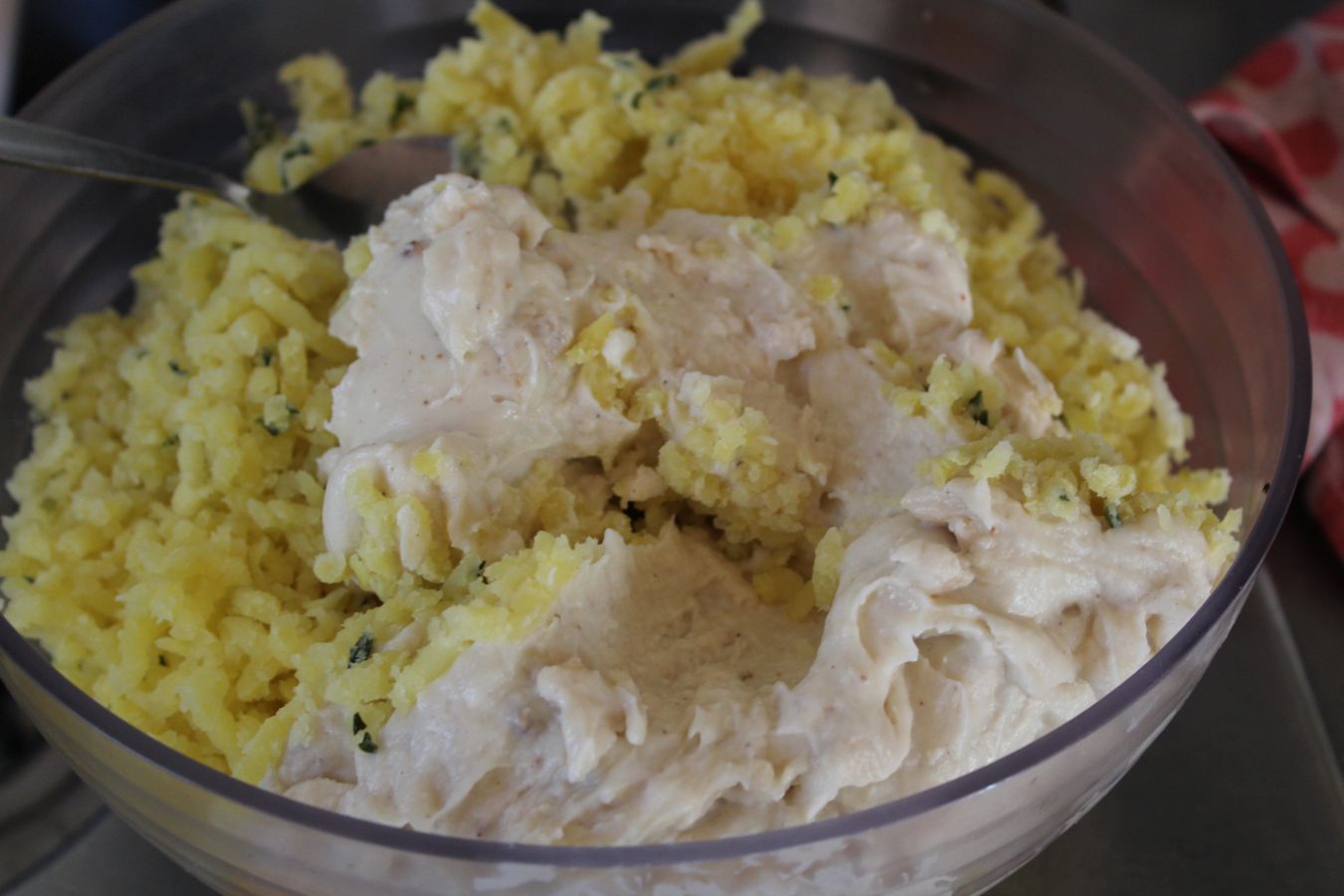 Hier ist die Béchamelsoße Teil der Basis für Hähnchenkroketten (Rezept kommt)