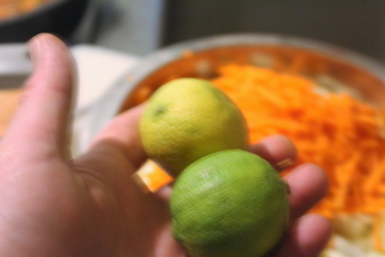 Mir stand der Sinn nach einem richtig frischem Dressing. Essig ist ja an sich nicht unfrisch im Daherkommen, aber eben ein Gärungsprodukt und somit schon ein bisschen länger unterwegs. Deswegen fiel meine Wahl auf den frischen Saft zweier Limetten. Einfach halbieren und entweder mit einer Zitruspresse entsaften, oder mit bloßen Händen über dem Salat ausdrücken (icke). Dann noch einen reichlichen Hieb neutrales Pflanzenöl, wie Rapsöl, damit der Körper auch einen Weg findet, die Vitamine aus dem Salat aufzunehmen.