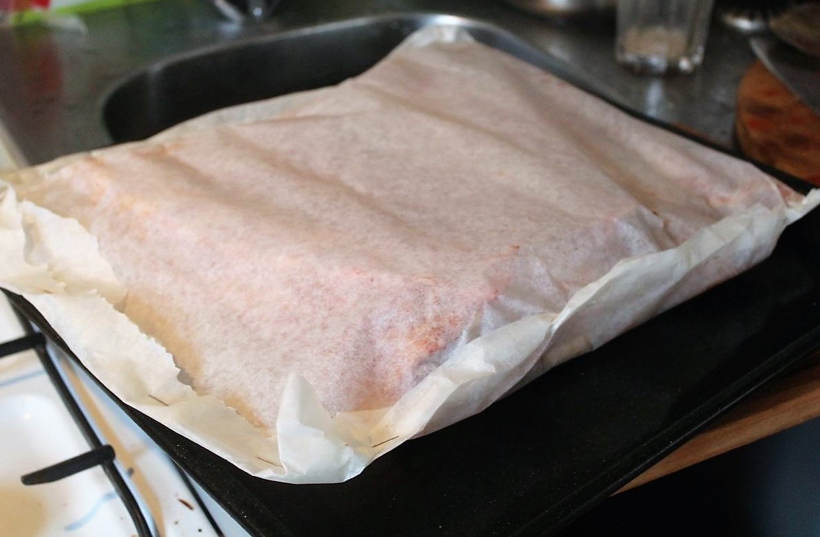Fleisch auf das Backpapier legen
