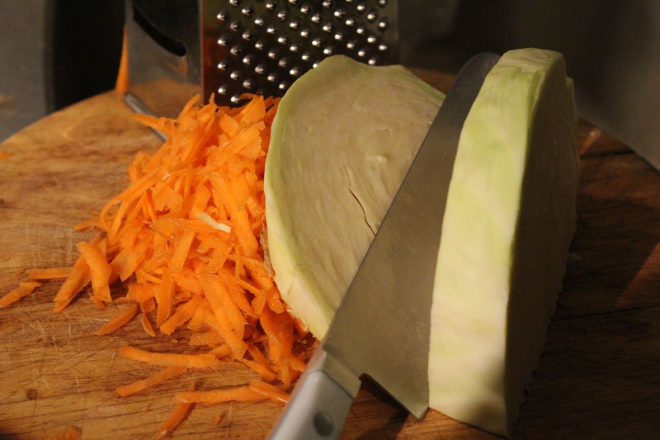Möhren raspeln, Weißkraut schneiden