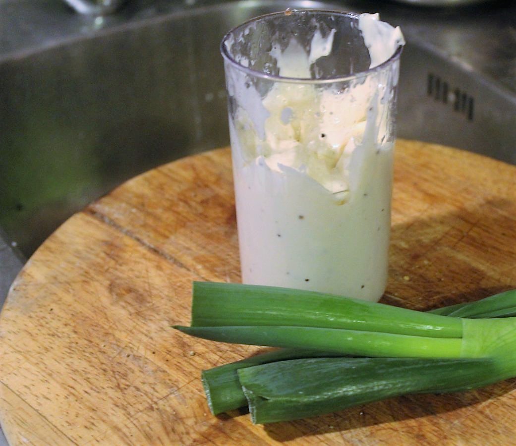 Lauchzwiebel unter die Mayonnaise heben.