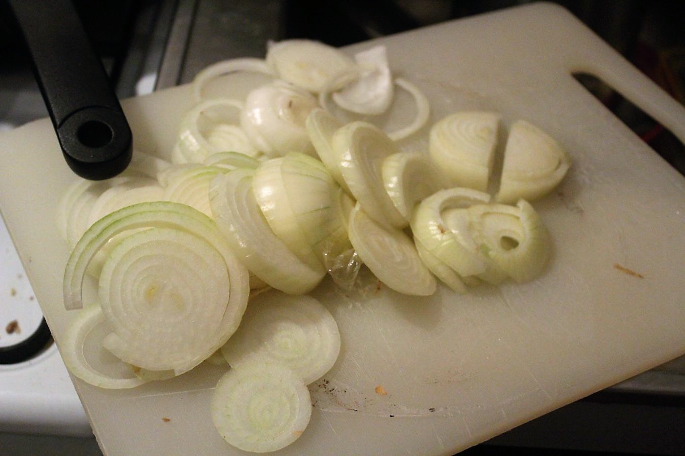 3 Zwiebeln häuten und zerkleinern.