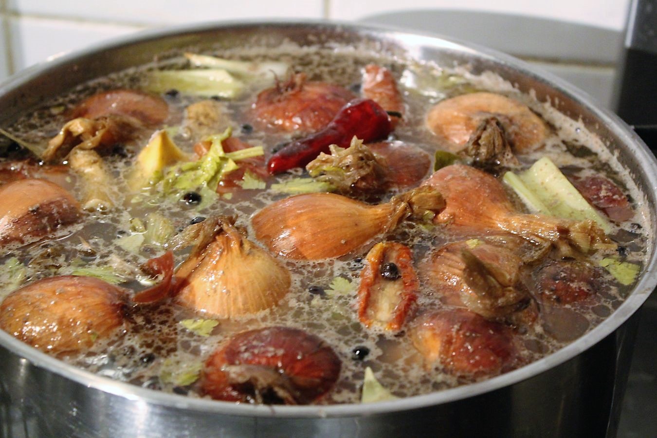 Auch Paprika darf auf keinen Fall als Gemüse in die Brühe, weil es die Brühe bitter macht.