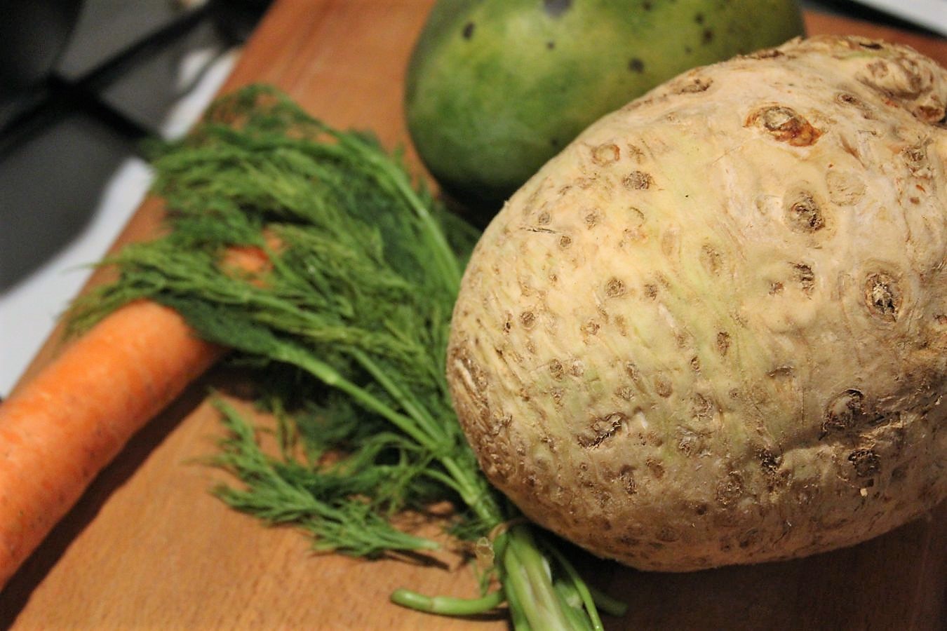 Sellerie und Möhren sind knackig im Salat, der frische Dill macht ein rundes Aroma und die Mango ist ein bunter Farbtupfer, den man in so einem Salat mit eher heimatlichen Zutaten nicht erwartet. Mit den Gewürzen und dem Mix aus saurer Sahne, Essig und Öl, kann man ein wenig spielen, wie man den Salat gerne hat. Ich bin eher bei sauer-scharf, viele andere werden stattdessen bei süß-sauer landen.