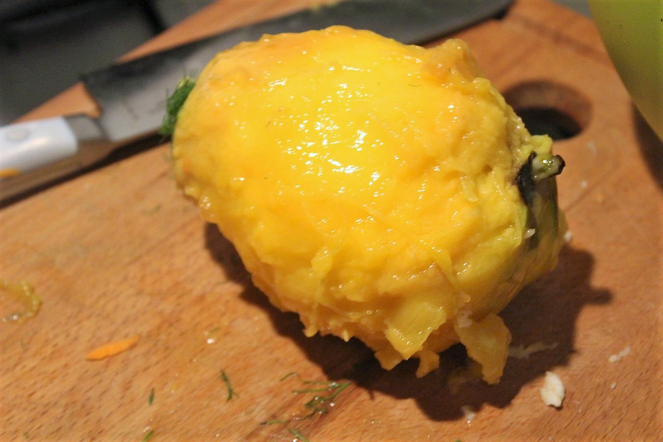 Dill klein hacken. Normal habe ich sowas ja immer nur getrocknet, aber wenn man das frisch bekommen kann, merkt man das ganz schön am Geschmack. Frisch ist eben frisch.
