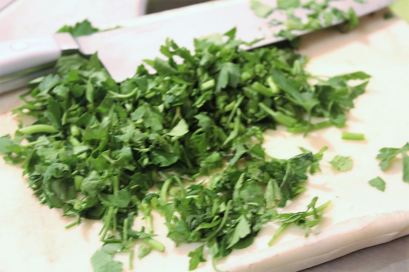 In der Zwischenzeit hacke ich einen Bund Petersilie klein.