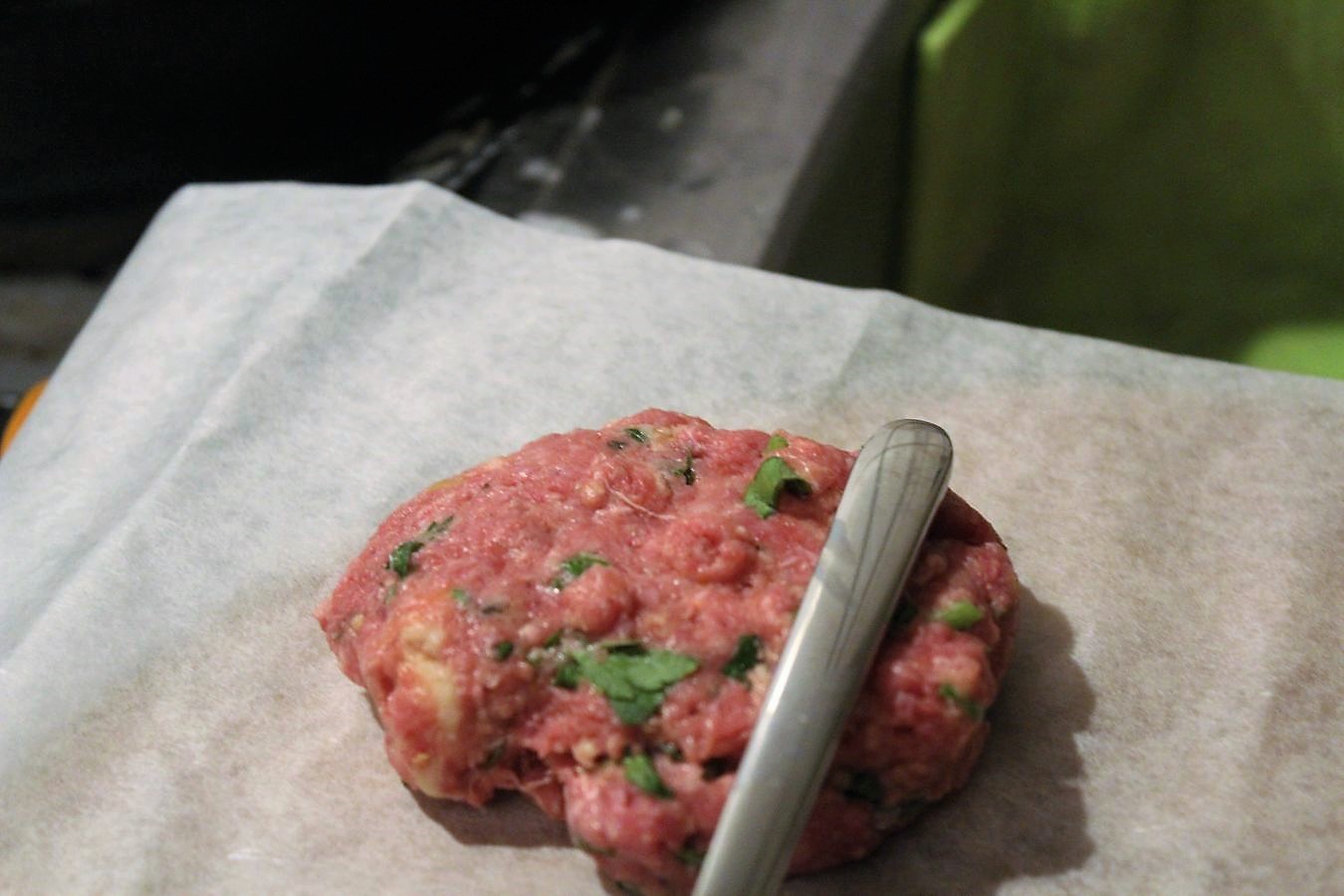 Die Fleischmasse ist feiner als bei schnöden Frikadellen, deswegen wird sie doppelt gewolft. Ich nehme reines Rindfleisch, kein halb und halb Hackfleisch aus Schwein und Rind. Wenn meine Basis zum Imitieren ein Rindersteak ist, dann brauche ich auch Rindfleisch.