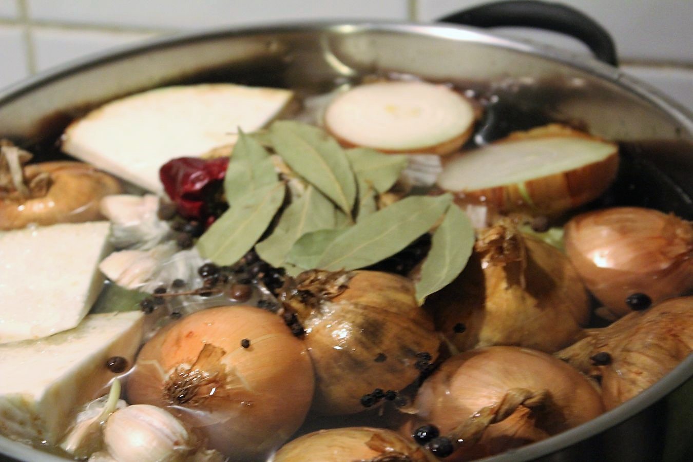 Mit kaltem Wasser bis 1 cm unter den Rand auffüllen Bei meinem 20 Liter Topf passen immer noch so acht bis neun Liter in den Topf. Die Brühe simmert nur, sie kocht nicht, über die gesamte Zeit und es kommt ein Deckel auf den Topf, der IMMER drauf bleibt. Da bleibt die ganze Flüssigkeit erhalten. Auf der größten Platte die Suppe erhitzen. Wenn sie kurz geblubbert hat, auf die kleinste Platte umziehen und so einstellen, dass die Brühe nur so leicht vor sich hinsimmert. Ihr werdet so nichts mit Schaum und Schwebstoffen zu tun haben, von denen ansonsten immer bei Brühe berichtet wird.