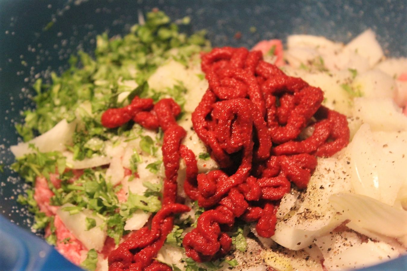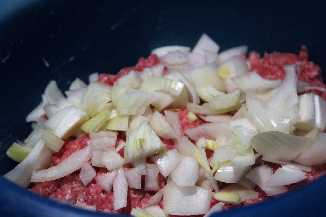 Zwiebeln mit dem Hackfleisch vermischen