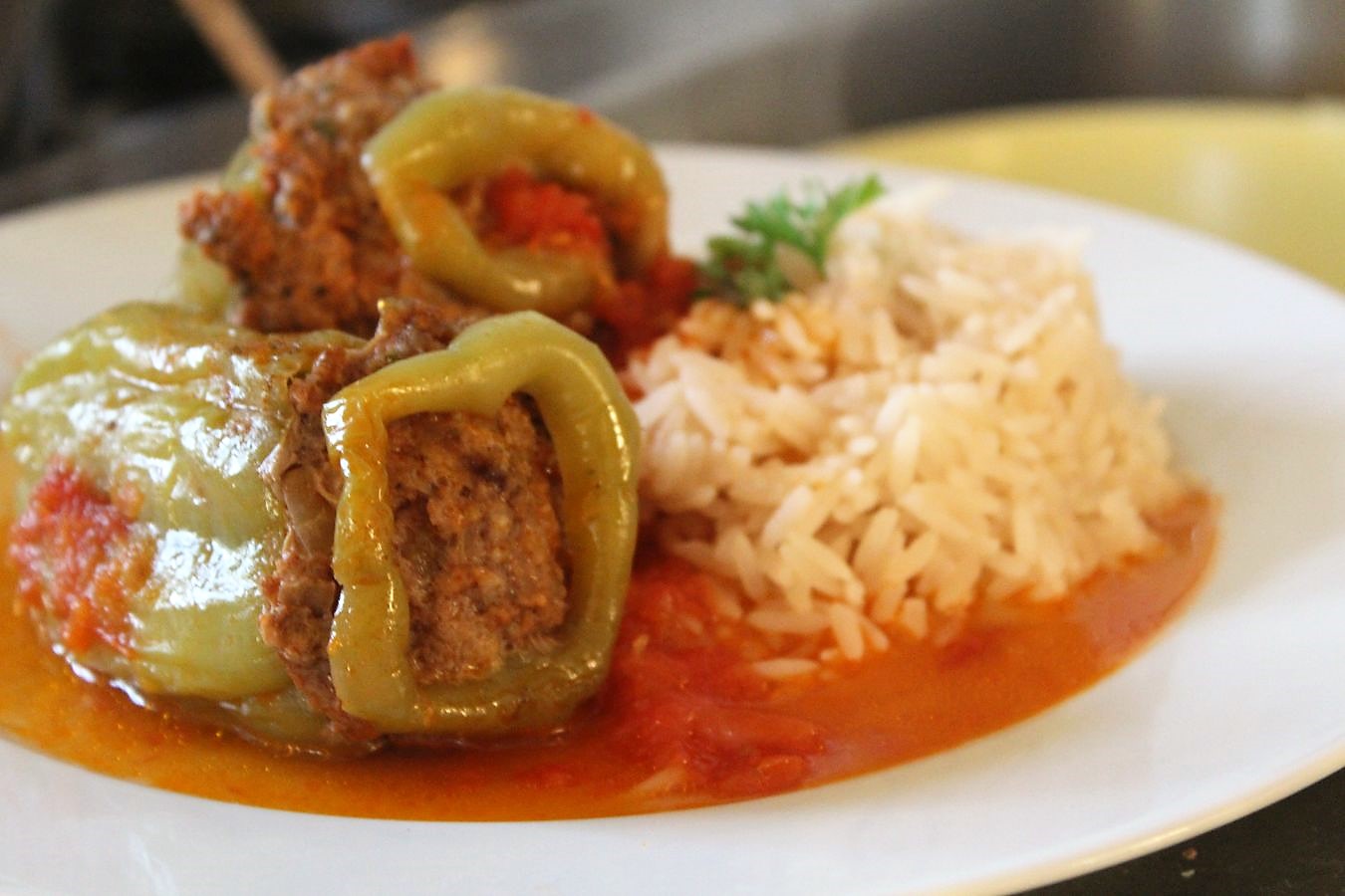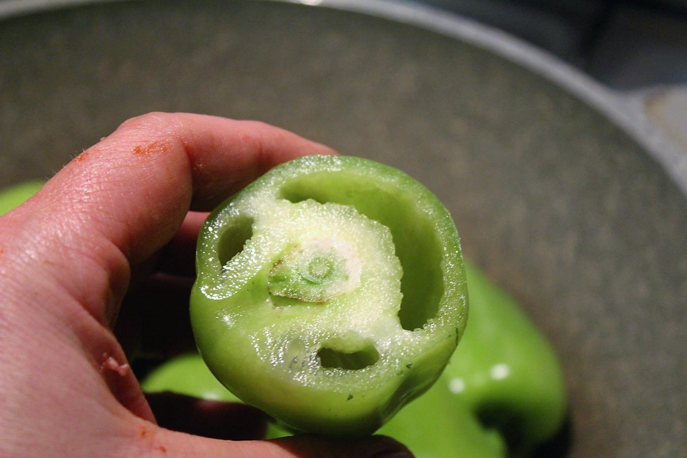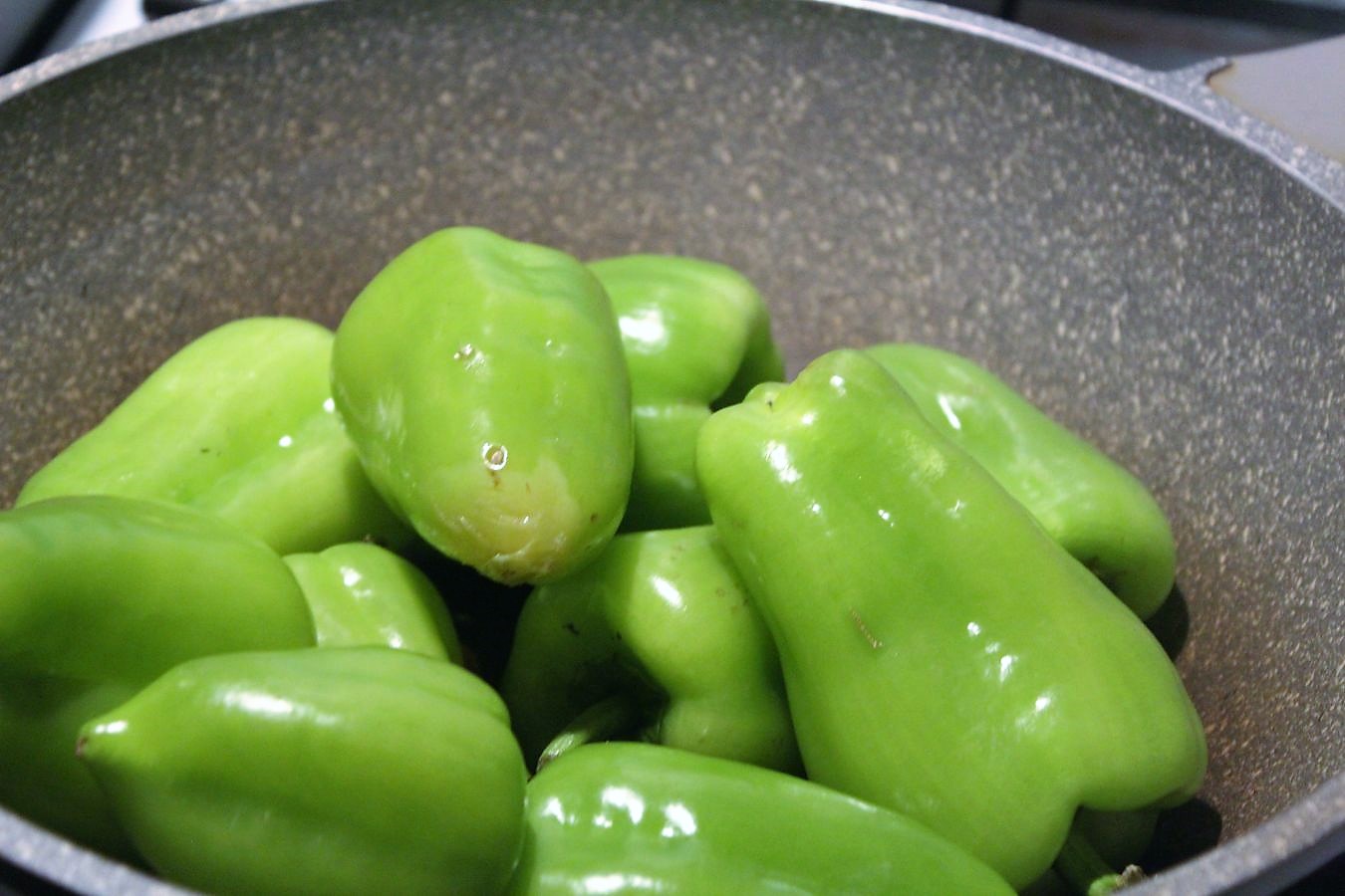 Die türkischen Paprikaschoten, die ich im Angebot beim Mix Markt gefunden habe, nennen sich Dolma und sind deutlich kleiner, als die handelsüblichen Paprika, die man sonst so in Deutschland verwendet. Ich finde das ganz praktisch, weil ich bei den großen Schoten oft das Gefühl habe, dass man zu wenig Paprika mit zu viel Fleisch auf dem Teller hat. So kann man mal eine Schote mehr essen und hat auch anteilig mehr Gemüse als Fleisch. Das mit dem Oberflächenverhältnis im Vergleich zur Masse führe ich nicht weiter aus.