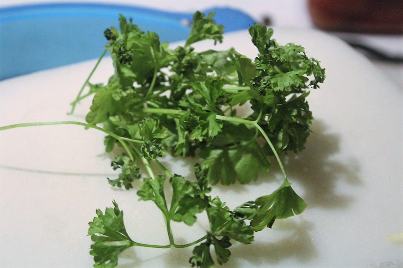Frische Petersilie hacken. Darauf habe ich im Moment gerade Lust, nachdem ich sonst immer nur, getrocknete Petersilie verwendet habe. Das kann sich auch jeden Tag wieder ändern, aber den Unterschied merkt man schon im Geschmack. Wer also kann, der sollte das frisch verwenden.